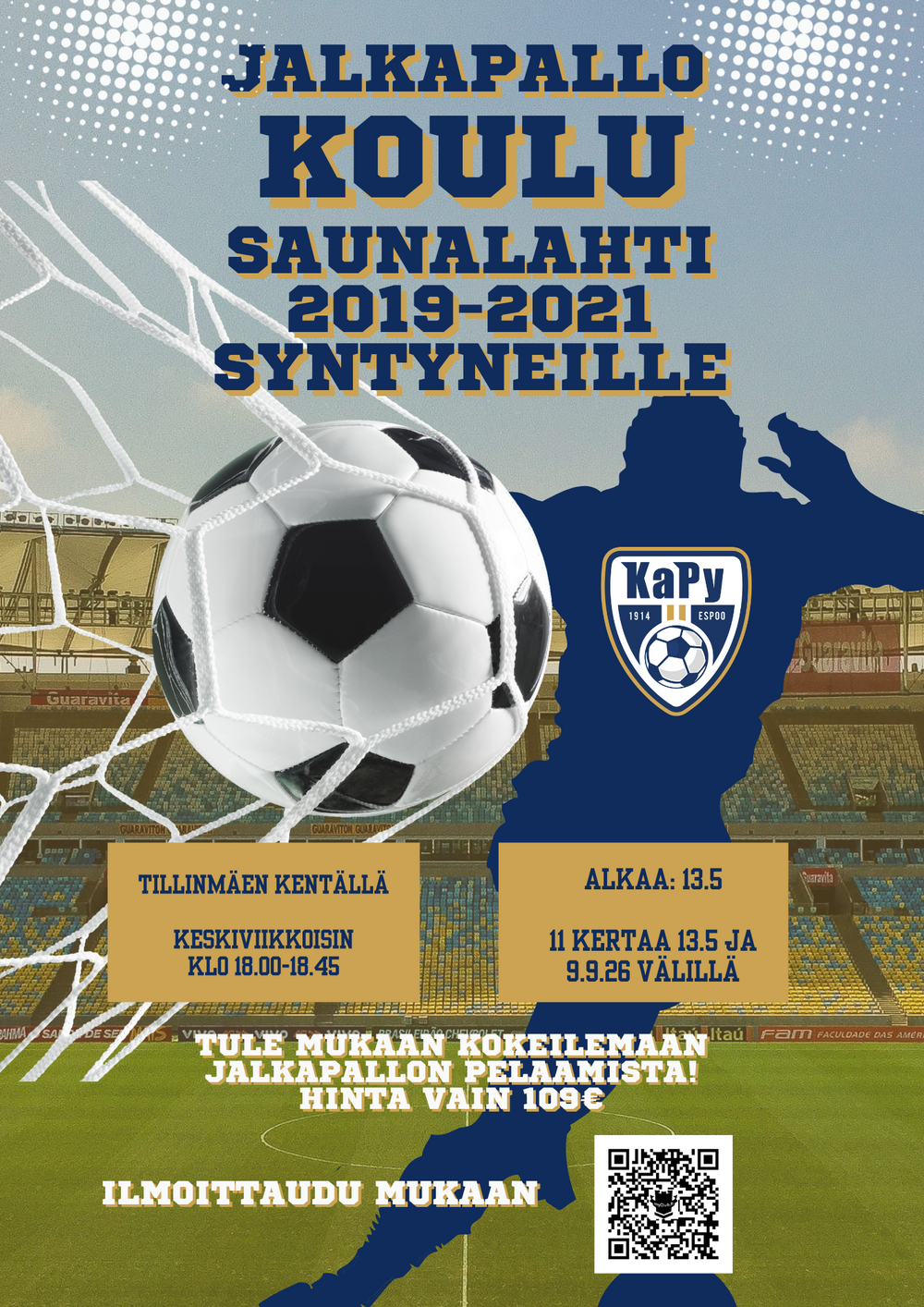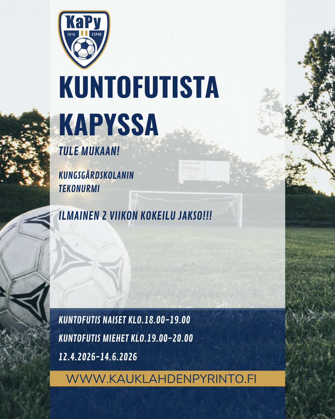 Espoon vanhin suomenkielinen urheiluseura, KaPy, tarjoaa elämyksiä jalkapallon parissa kaikenikäisille ja -tasoisille pelaajille, sekä innokkaille tukijoukoille!